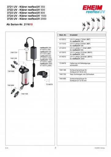Ingrédients Eheim Reeflexuv 1500 Esterilizador Uv