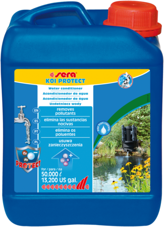 sera KOI PROTECT conditionne instantanément tous les types d’eau pour en faire une eau de bassin, limpide, saine et propre, adaptée aux poissons.