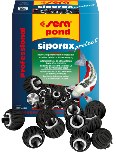 SERA siporax pond protect Professional est le milieu filtrant biologique avec une boule de protection résistante à l’usure, qui a été spécialement développé pour être utilisé dans les filtres à fort débit d’eau. Le couvercle extérieur protège l’anneau siporax à l’intérieur et dirige le flux d’eau directement vers lui. De cette façon, le flux à travers l’anneau en verre fritté est encore plus efficace et la performance de nitrification des bactéries du filtre est augmentée, grâce à une oxygénation maximale. Grâce à sa structure unique en tunnel avec un grand nombre de pores tridimensionnels, l’intérieur du Siporax offre des conditions optimales pour la colonisation avérée des bactéries du filtre. La surface nécessaire aux bactéries pour se fixer est augmentée de manière optimale et la décomposition des substances nocives est maximisée. Il en résulte une eau biologiquement pure et des intervalles de nettoyage du filtre particulièrement longs.