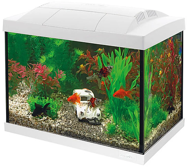 Disponible en 6 tailles de 20 à 146 litres, comme aquarium de poissons rouges ou aquarium tropical. Les kits tropicaux sont fournis avec un chauffage d’aquarium !